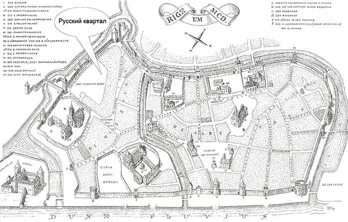 Уже на самом раннем этапе существования Риги, с начала XIII века, в городе наличествовал особый «русский квартал», в котором постоянно проживали русские рижане. Главной улицей этого квартала являлась Русская улица (ныне ул.Алдару), что теперь ведёт к знаменитым Шведским воротам.